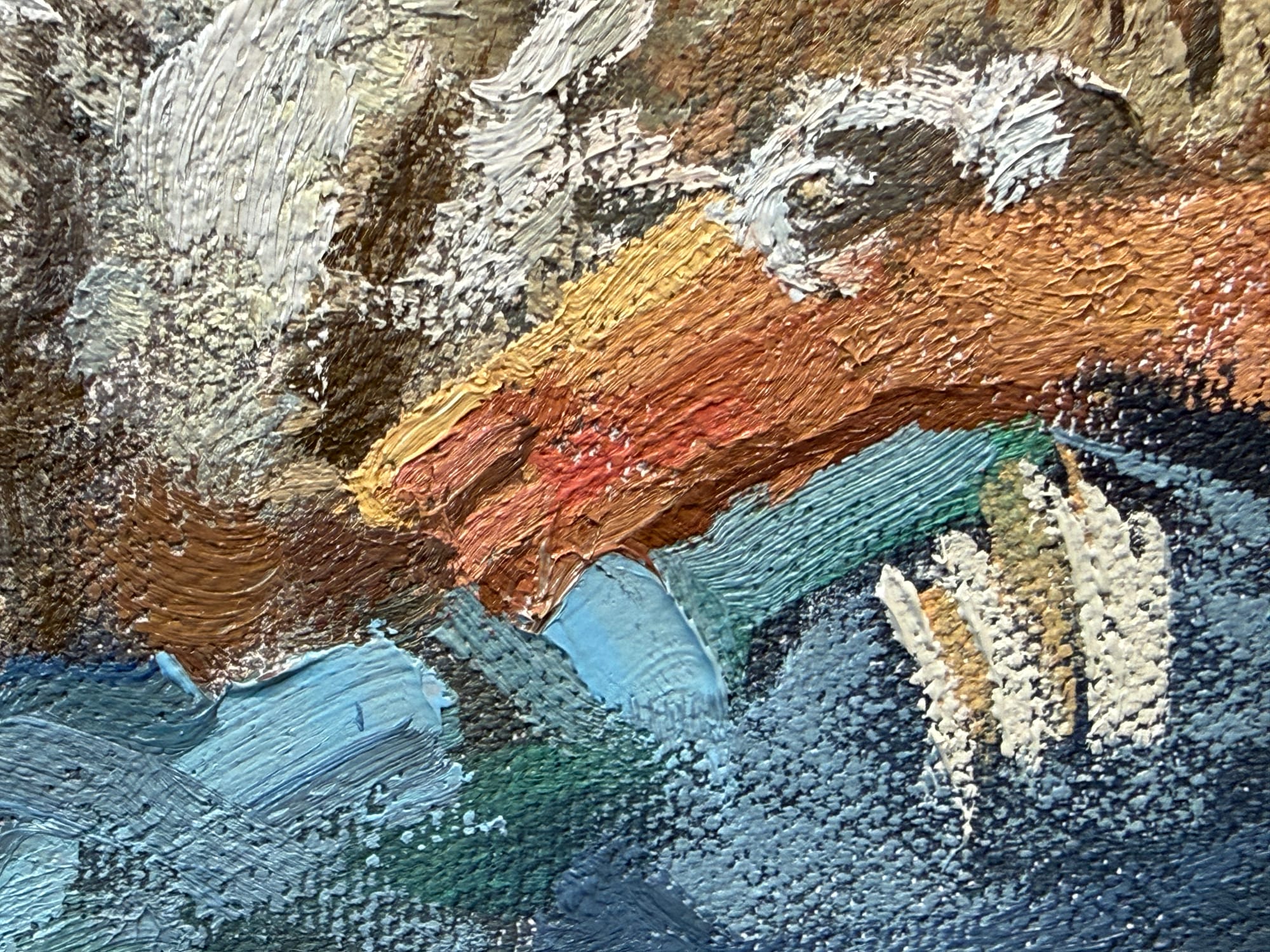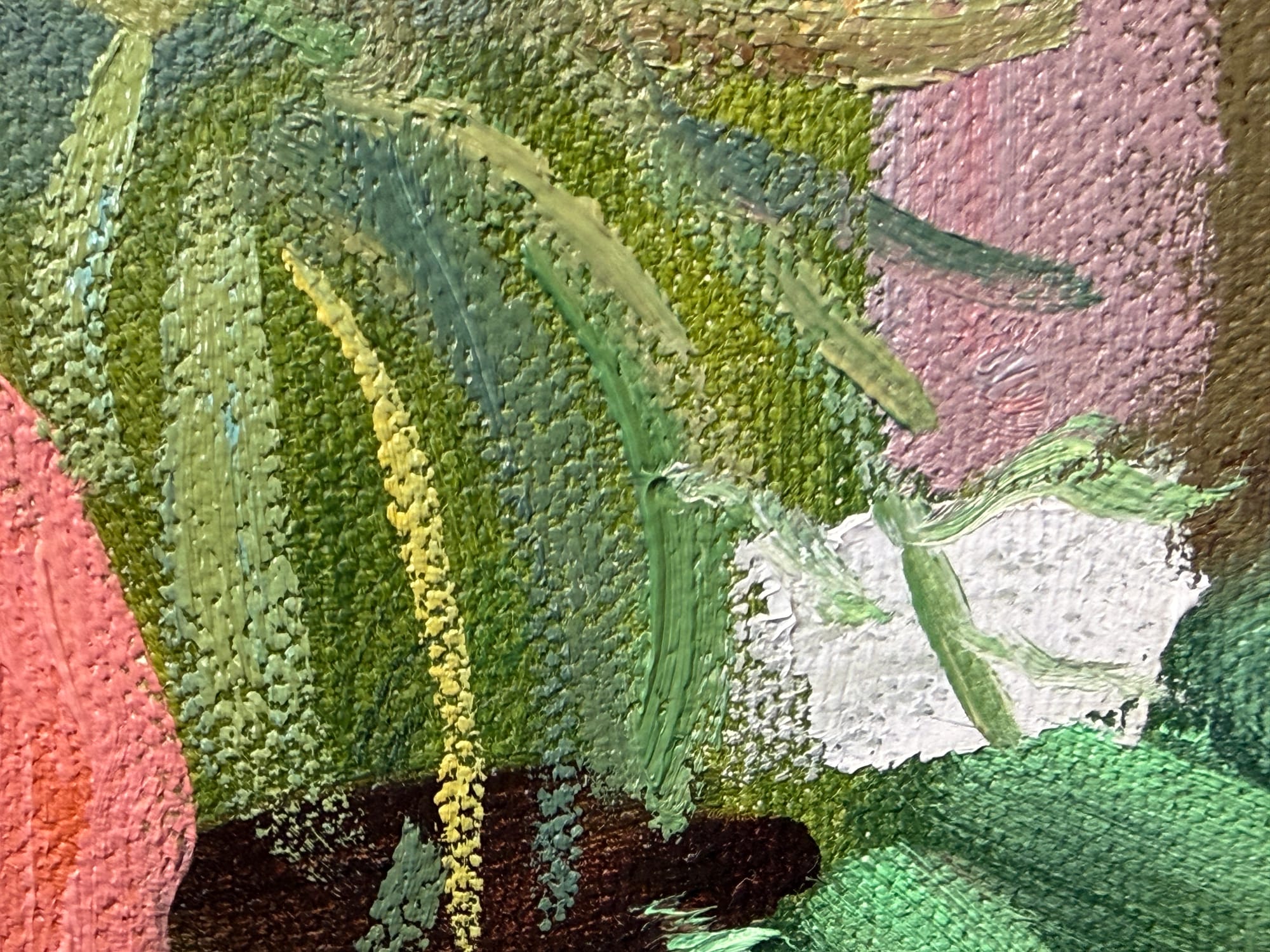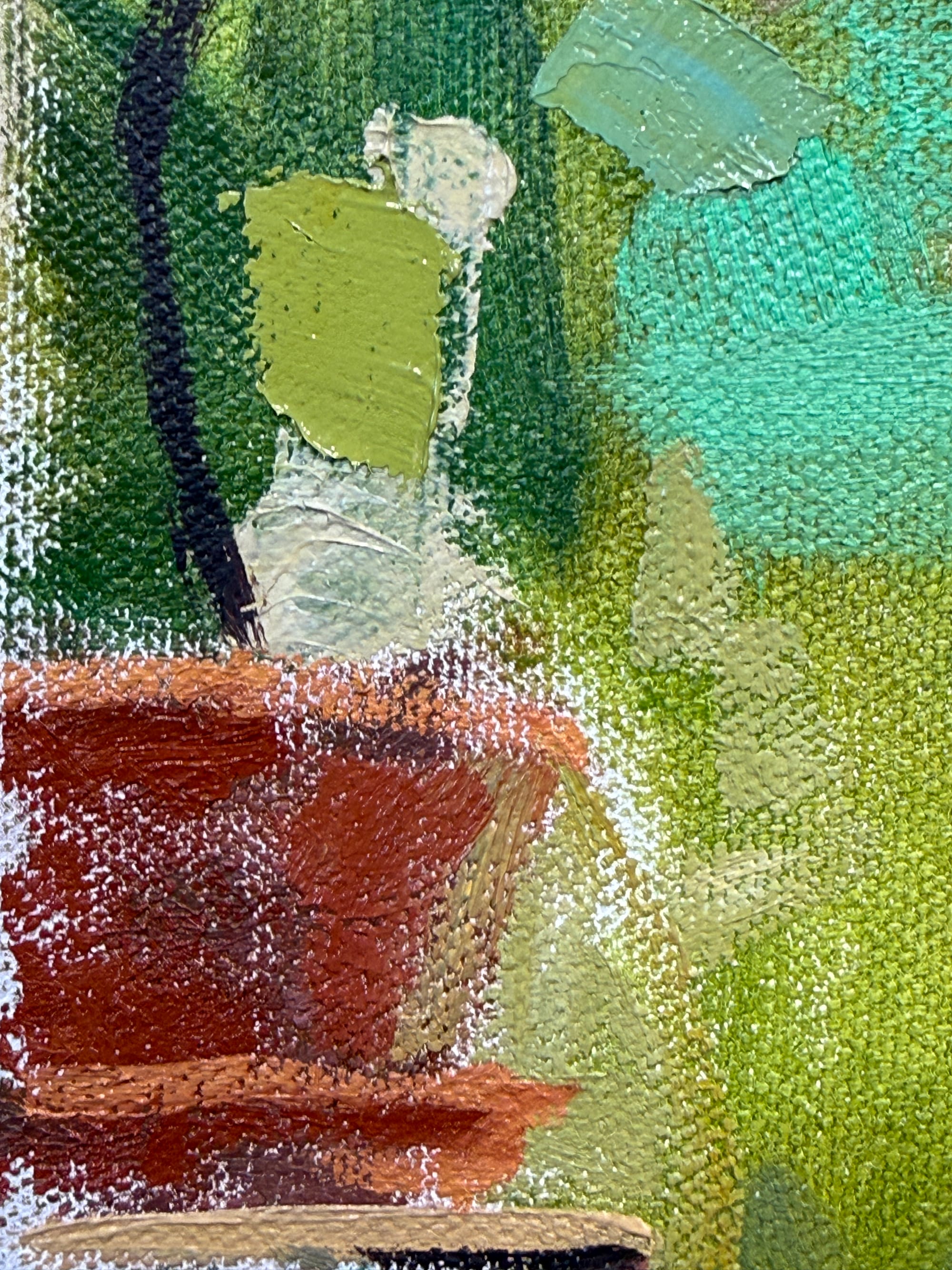 Oftentimes, I try to find some common thread or insight about painting to include - mostly because writing things down helps me to remember them better. But also because it's either that or I spend the newsletter making fun of myself. Sometimes I can do both. Today as I was thinking about what to write about, I was having trouble thinking about what interesting thing happened while painting. Nothing. There was no interesting thing that happened. Sometimes that just how painting goes - sometimes you just need to power through some mundane, non-interesting stuff to get through to the end of the painting. I got some more extraneous background stuff taken care of, and did a bit more work on Alva. He looks better now, but he's still not quite there yet. maybe one last final pass? I hope? I am really digging Hannah's hands though. They went from blobs to passable hands. The big tough thing I'm really not looking forward to attending to is the plants along the edges of the painting. Those are gonna be a bear to paint.