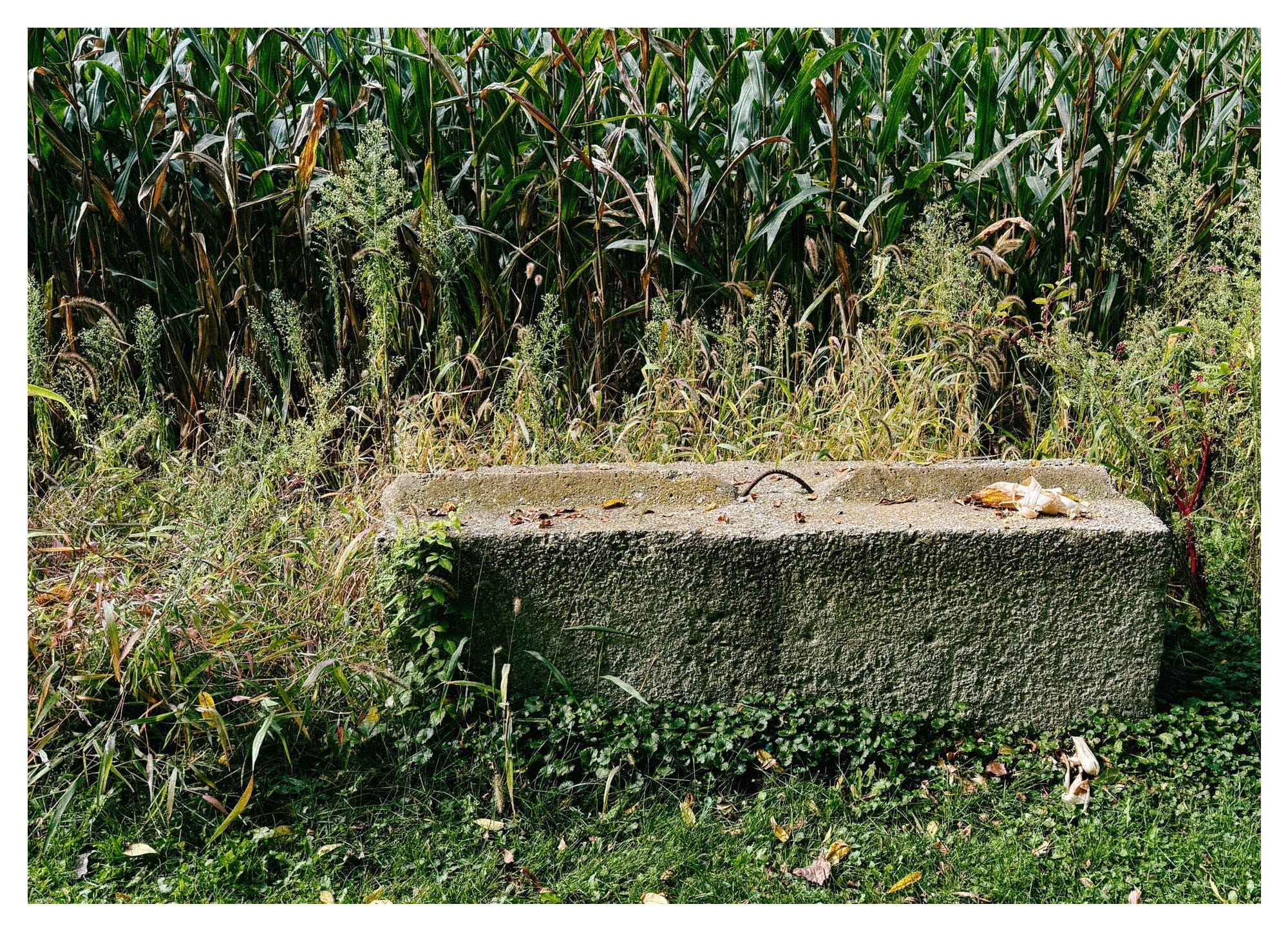 I was sitting at my computer looking through my photo references this afternoon, while watching some youtube videos of people painting outside. Nothing was striking my fancy and I was starting to wonder if I just wasn’t into painting today. Then I started thinking that maybe I just wasn’t interested in painting indoors today. And over the past few years one of my secondary goals has been optimizing my oil painting kit to fit on my bike. So I figured I’d give it a test run and see what worked and what could use further refinement. I loaded all my painting stuff onto my bike, forgot paper towel and had to turn around and come back real quick, and biked down to the river on campus. I must’ve cruised around for a good 45 minutes looking for just the right scene to paint. Meandering down a dirt road along side a cornfield, I noticed a leaf trapped in a spider web, hanging a few feet above the ground and spinning. Nearby a corn cob was sitting torn open on one of the field barriers, an offering to the squirrels and raccoons.