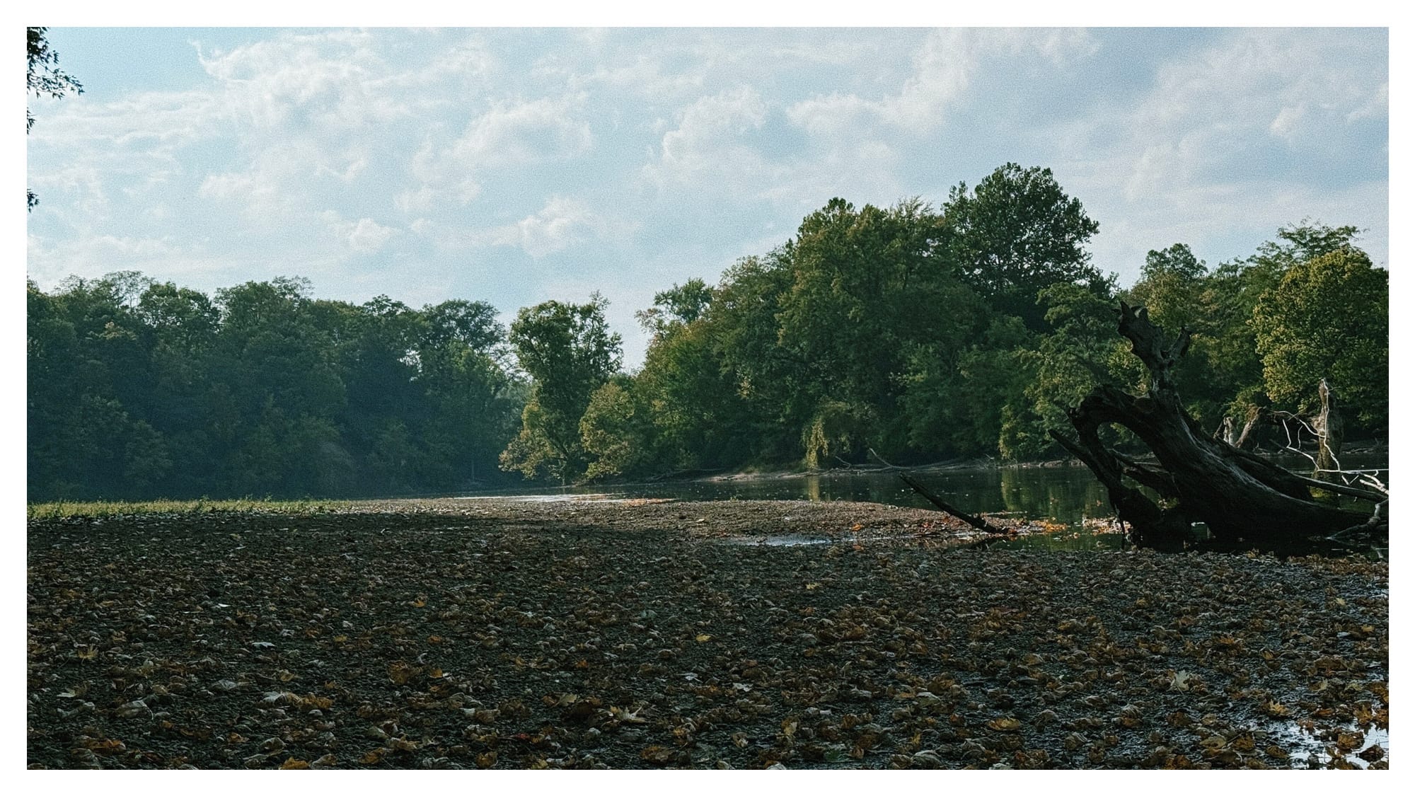 I stopped by the University farm to see if the goats and sheep were doing anything fun. They were all huddled under their shelters hiding from the sun, or out in the middle of the field where I couldn’t see them well enough to paint them. I moved on to the river proper, to a spot that I have often liked painting in the past. The river is usually low at this time of year, and this year is even more so, as we haven’t gotten a lot of rain this summer. Half the river was an exposed sand bar, and everything smelled a bit fish-y. At my feet, some shells peeked through the mud and leaves.