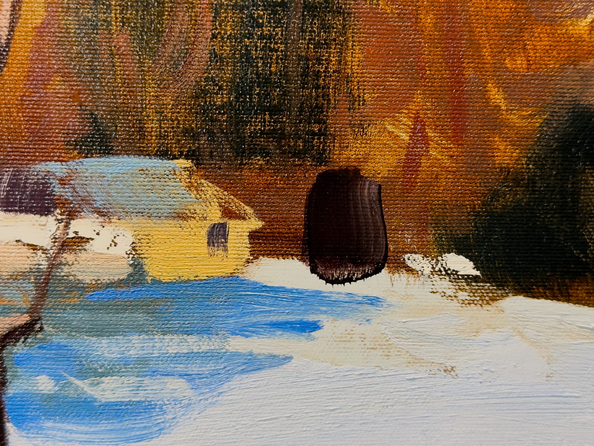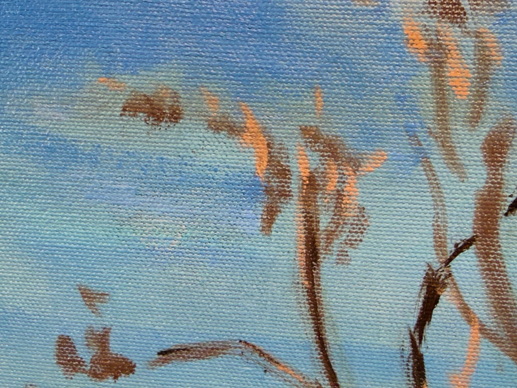 Is this a real or imagined phenomenon? I don't know. I love the poetry of the first explanation. But the weird workings of the mind are also fascinating! I kinda hope it's a bit of both, but as an artist I view my job as one of taking reality and distilling it into something that feels more than real. The blue shadows give the feeling I'm looking for in the painting, so blue they stay.