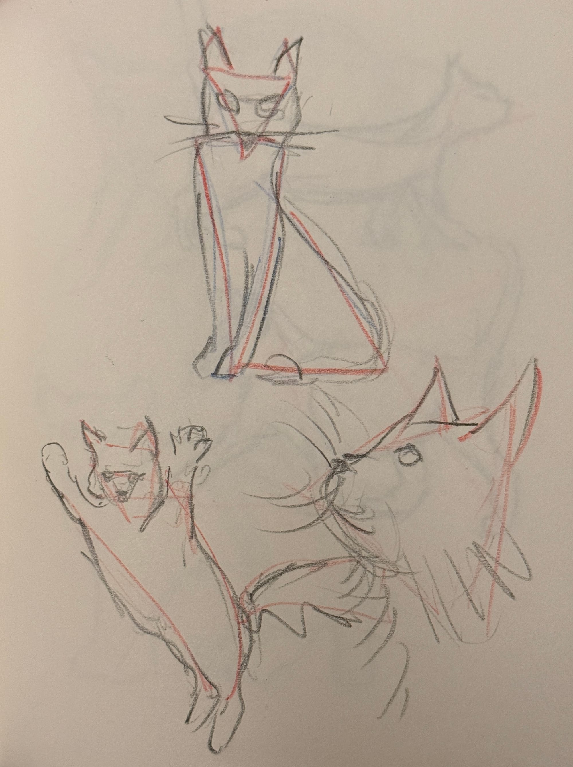 So as I’m sure you’re quite aware at this point, I’ve been spending the past few days learning to draw/cartoon cats more effectively. And then for some reason today the thought “Cats are basically just a bunch of triangles” popped into my head, and I figured I’d better try it with a few cat sketches.