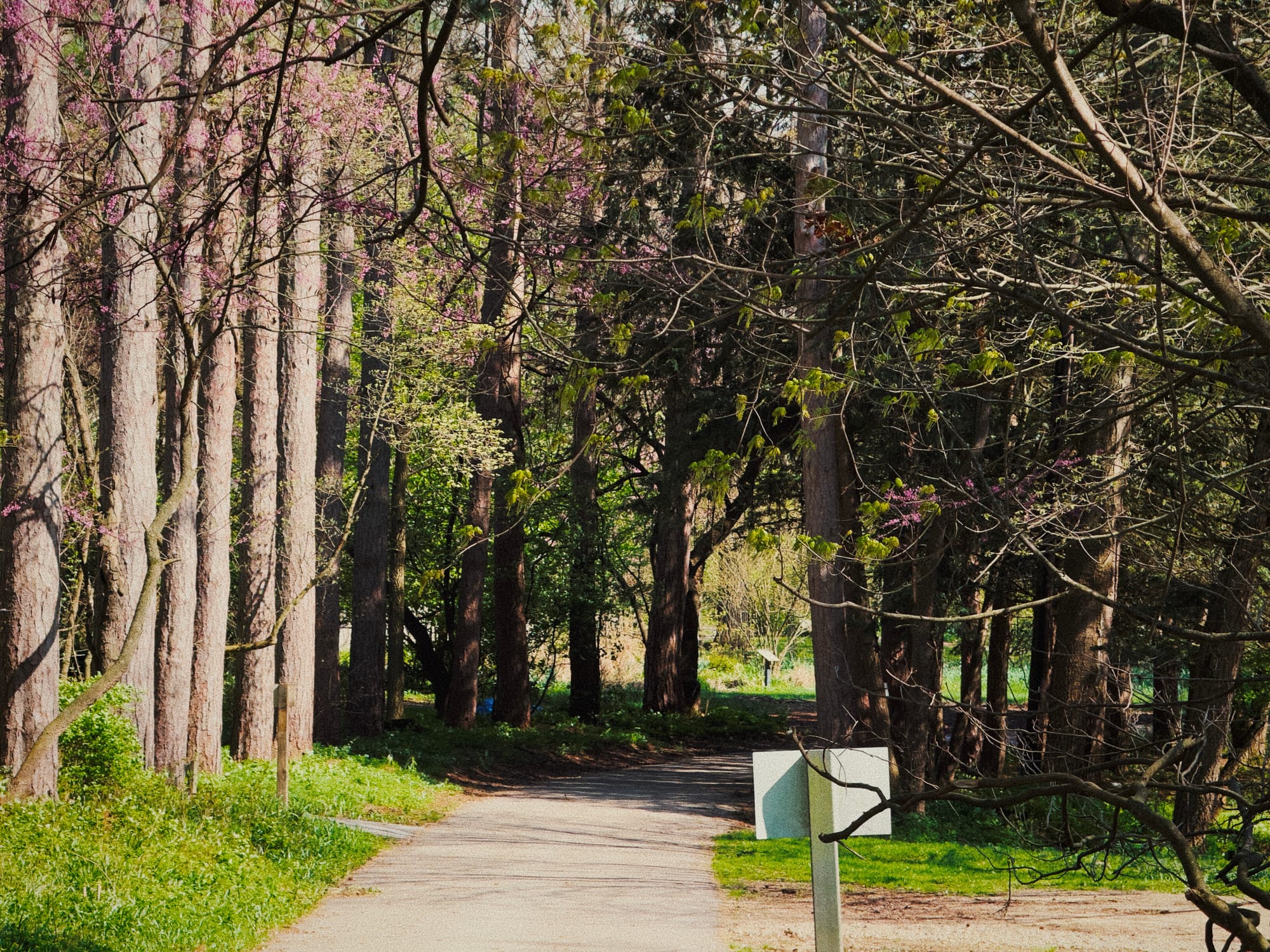 We ended up at a local park/nature preserve called Fernwood two day in a row. Both were beautiful spring days, though there was a good 30 degrees of temperature difference between the two. Both days, though, I found myself drawn to a particular turn in one of the pathways. It's lined by a thick wall of pine trees that are drastically different in character on either side. Tall vertical pines on the left, and on the right much shorter trunks before the bulk of the needles. I love the little bits of light that make it through the trunks on the right side. So I started a compositional sketch of the scene, in the hopes that I can start a painting of this turn in the path soon.