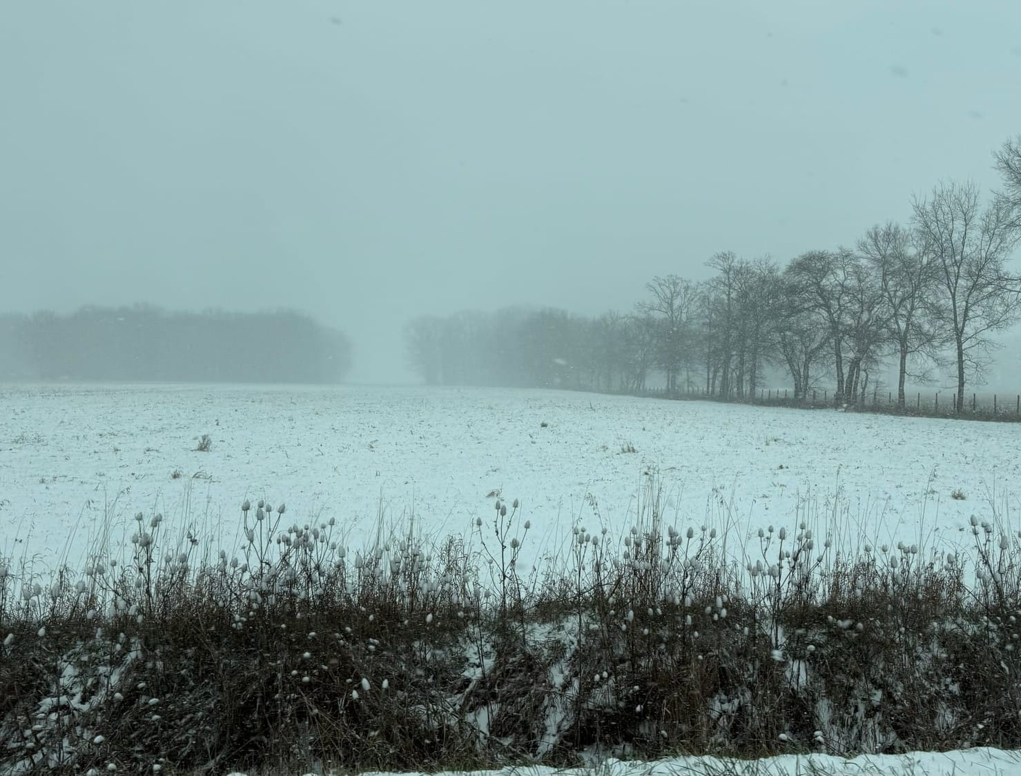 Today we got together with our game group and did a pizza and boardgames day. Hannah and I have been getting pretty good at King Arthur Flour's recipe of the year for 2026 - flaky laminated crust pizza, so we all convened to make bake and devour pizzas and play boardgames today. After baking all the pizzas I needed a bit of time to sit and disassociate a bit. So I did most of this digital color sketch of a foggy snowy corn field (it might be a soybean field) that I've had in my inspo folder since I took the photo last winter. There's just such a nice atmosphere to this image that I thought would be fun to try to capture. I love the gradation of hard edges of the weeds in the foreground to this soft, almost lost edges of the tree-line in the background. Same goes for the values in the painting - there's a large value range in the foreground - crisp whites all the way at the bottom, and the darkest cards in the shadows of the weeds, and almost no value difference between the woods, sky and field at the horizon line. This piece feels like it would make a really nice watercolor painting. Perhaps when I'm done with this mad portrait scramble next week, I'll give it a try as a physical painting.