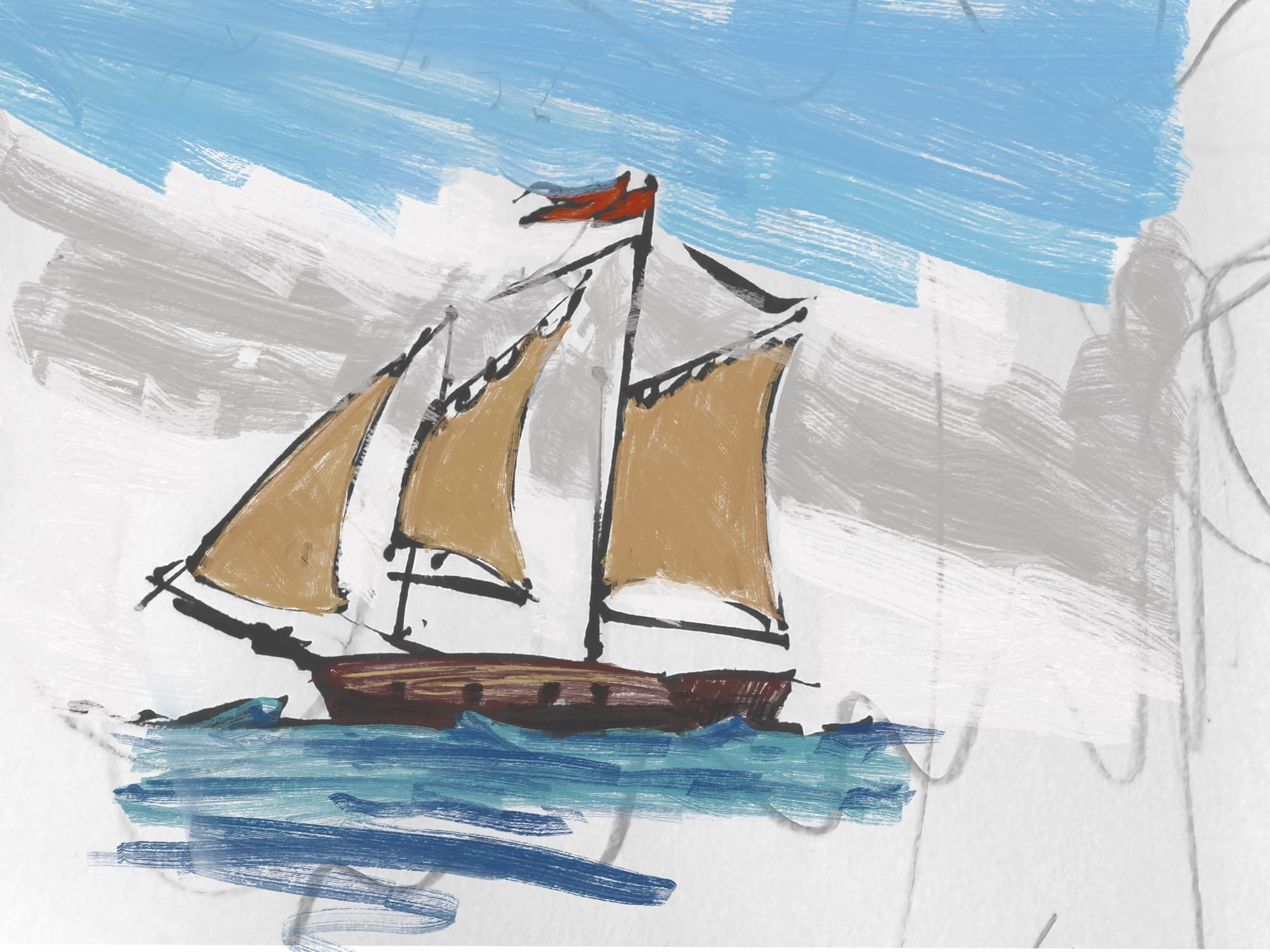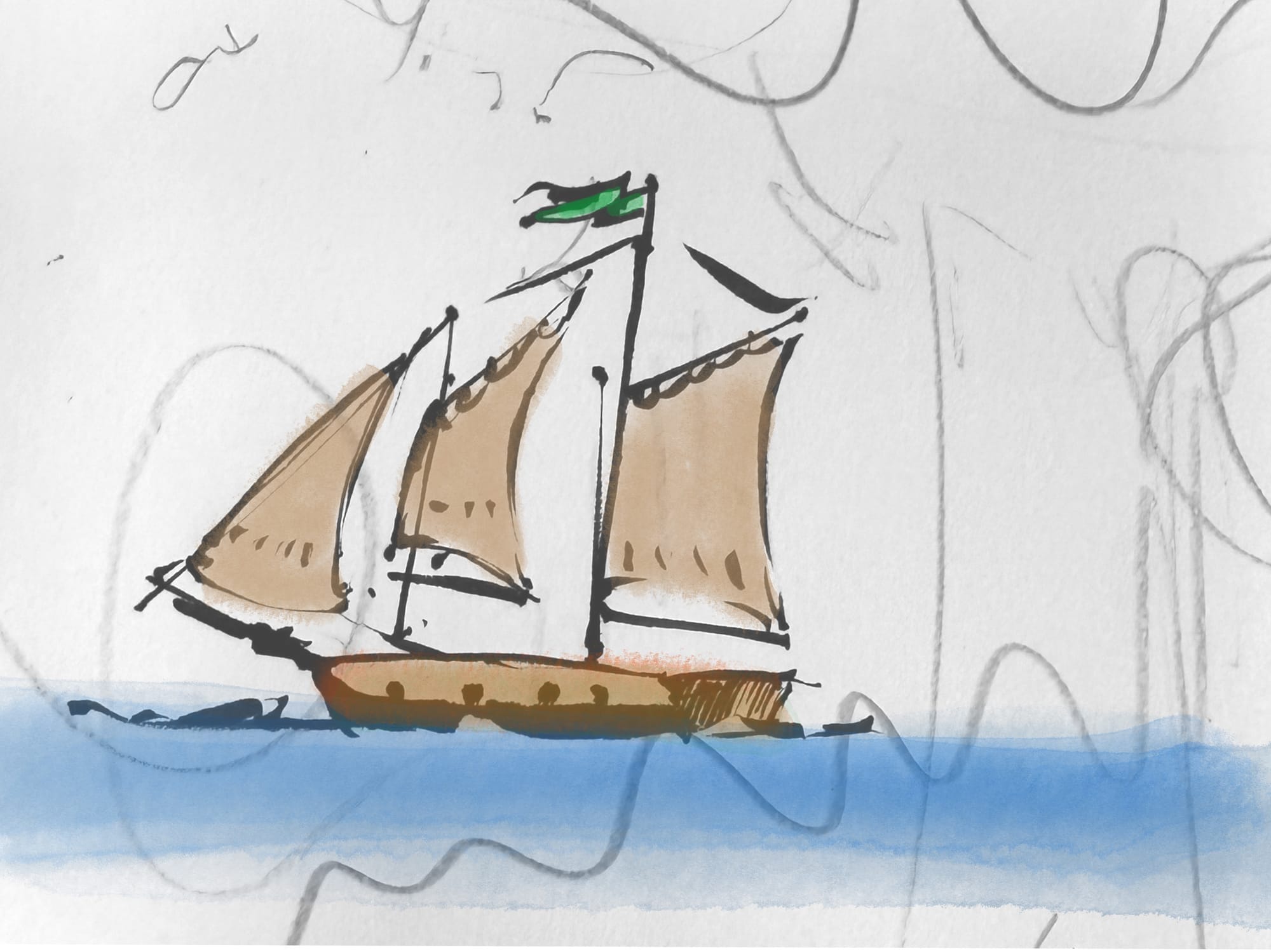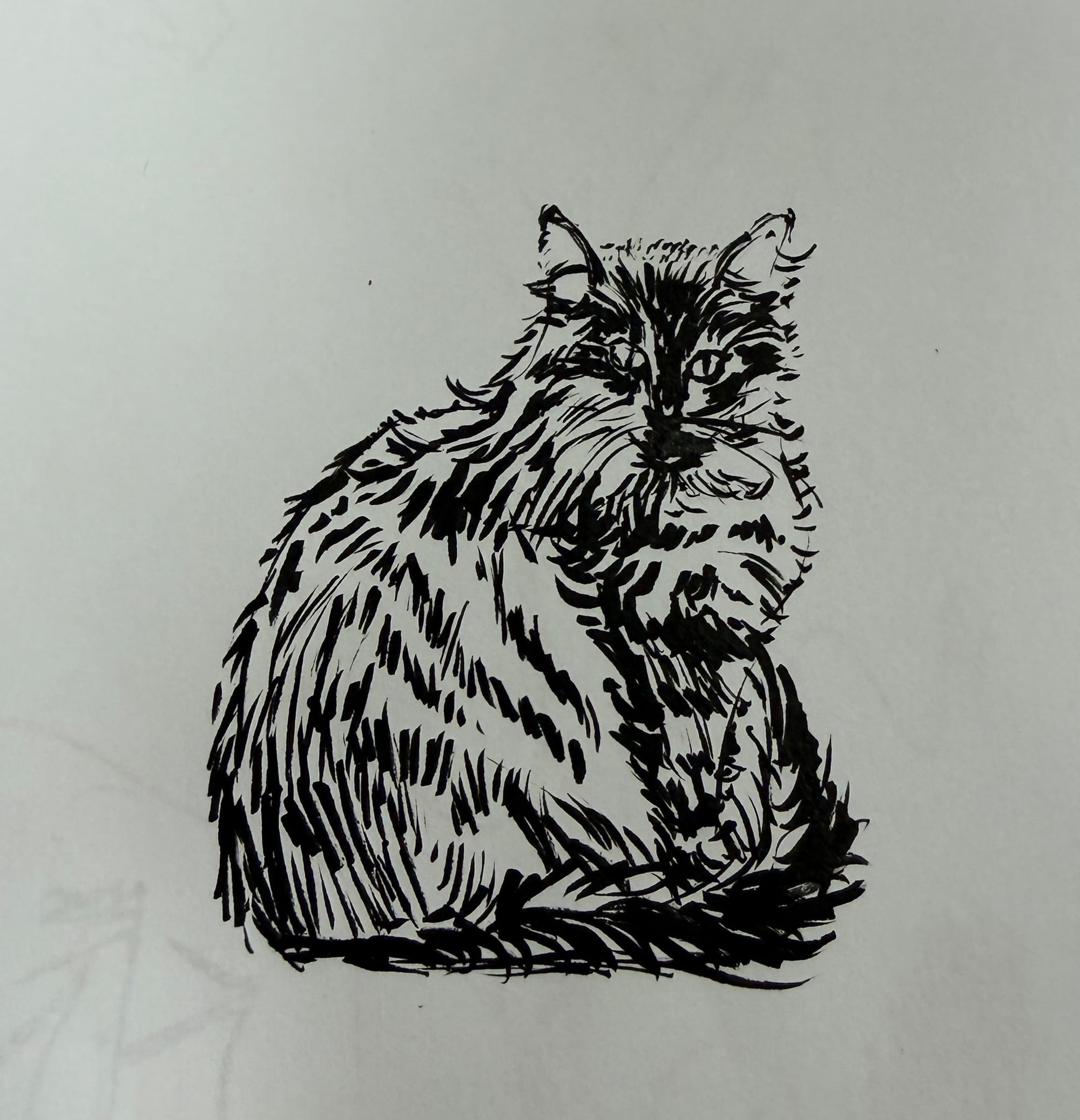 I doodled this sailboat in drawing class yesterday, and snapped a quick picture of it today. I used it as the base for some digital Procreate sketching trying out the new brushes. I did a few different versions, trying the oil and watercolor brushes. So far, the new brushes seem really nice! Finally, I did this quick sketch of Alva with a brush pen. Ink is always challenging, as there’s no way to erase or correct your mistakes. For me, that means being very careful at the start of the sketch to make sure I’m getting all the major areas laid out exactly where they should be. I still messed up a bit, but I think I was able to save it overall. It at least looks like a cat?