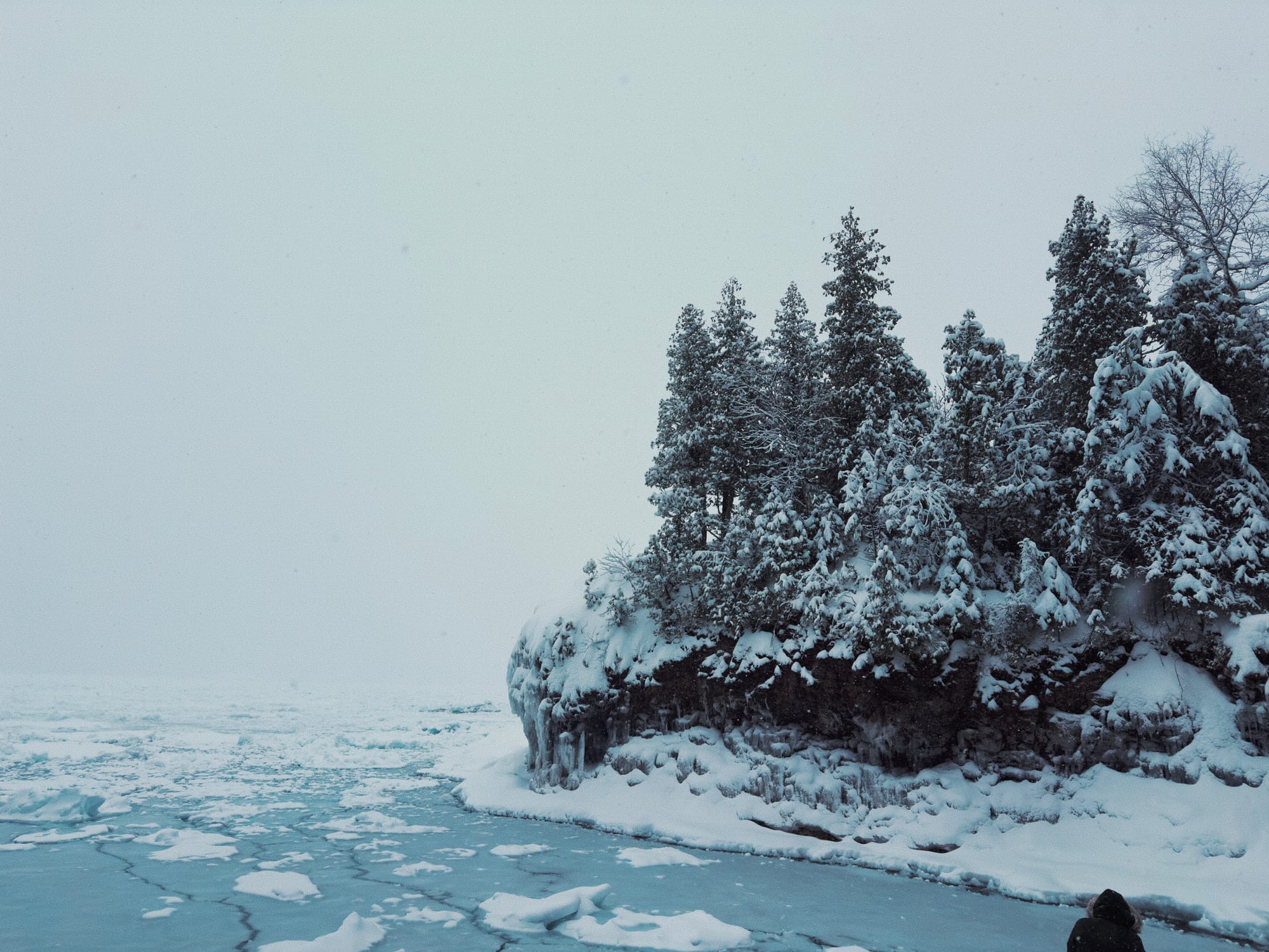 I finished off the last page of this sketchbook with a quick sketch from our winter hike on Presque Isle today. I tried a single-line fountain pen sketch, where the pen doesn’t leave the paper and the whole thing is done in one squiggly line. I finished it up with a few spots of brush pen where there were darker accents necessary. There Were times during the walk where it felt like we might have strayed into Narnia, and would see a lamppost and a faun with an umbrella any moment...