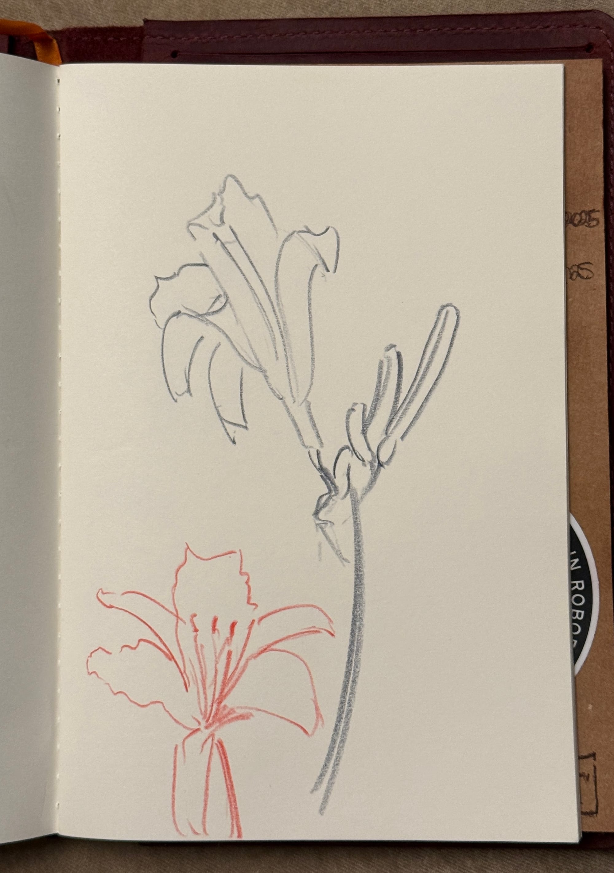 Today was also the first day of school, and I’m teaching Intro to Drawing. I snuck these lily drawings in after I’d gone over beginning of the year housekeeping stuff for the class and introduced the first project. I love drawing lilies.