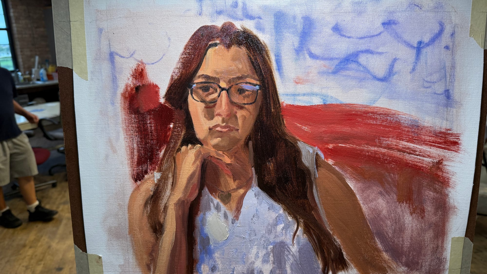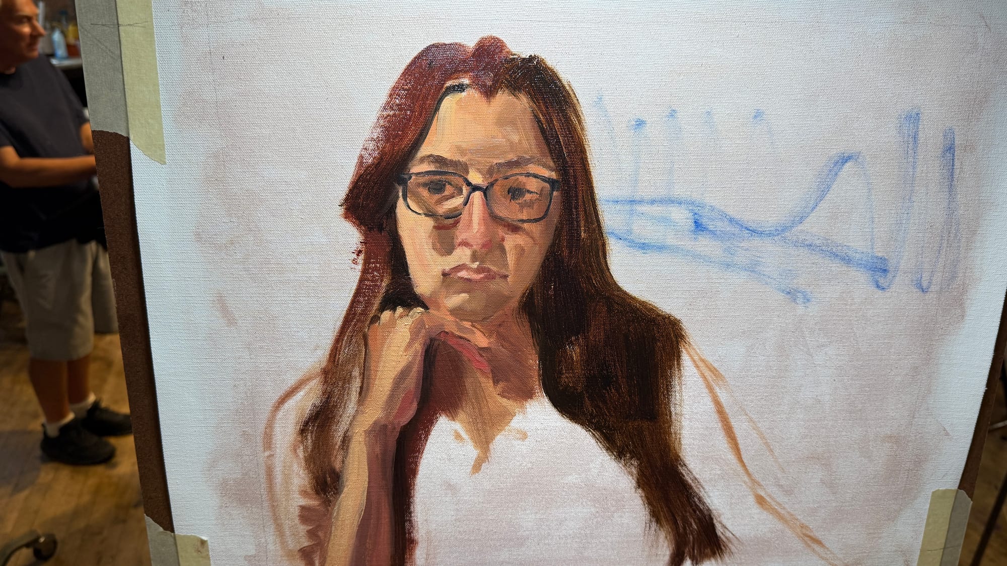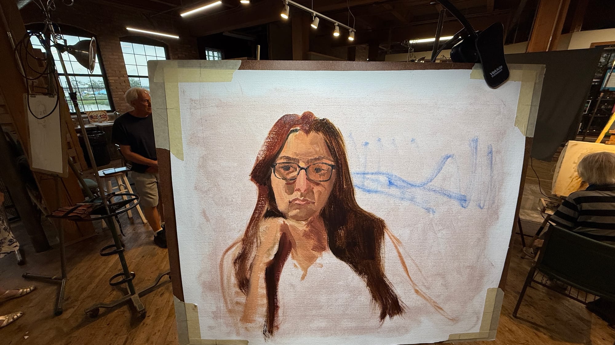 Wednesday night is portrait night, so you know what that means. I don’t have much of interest to say about this one, other than that it went well. Our model was a model from several years back, so I‘ve had experience painting her before. That probably helped it go well.