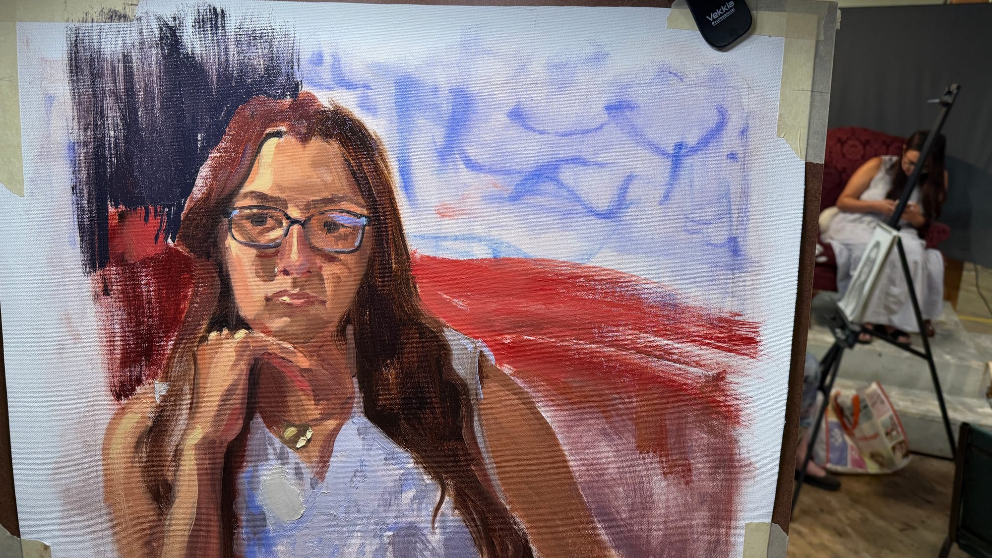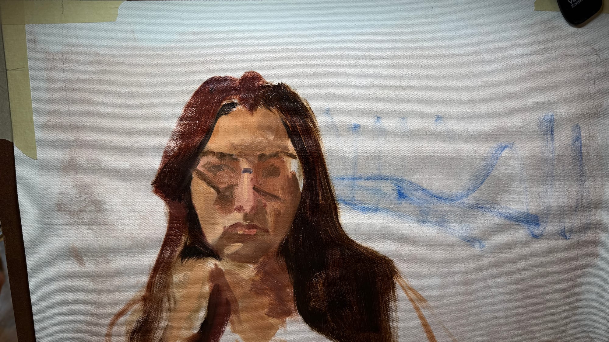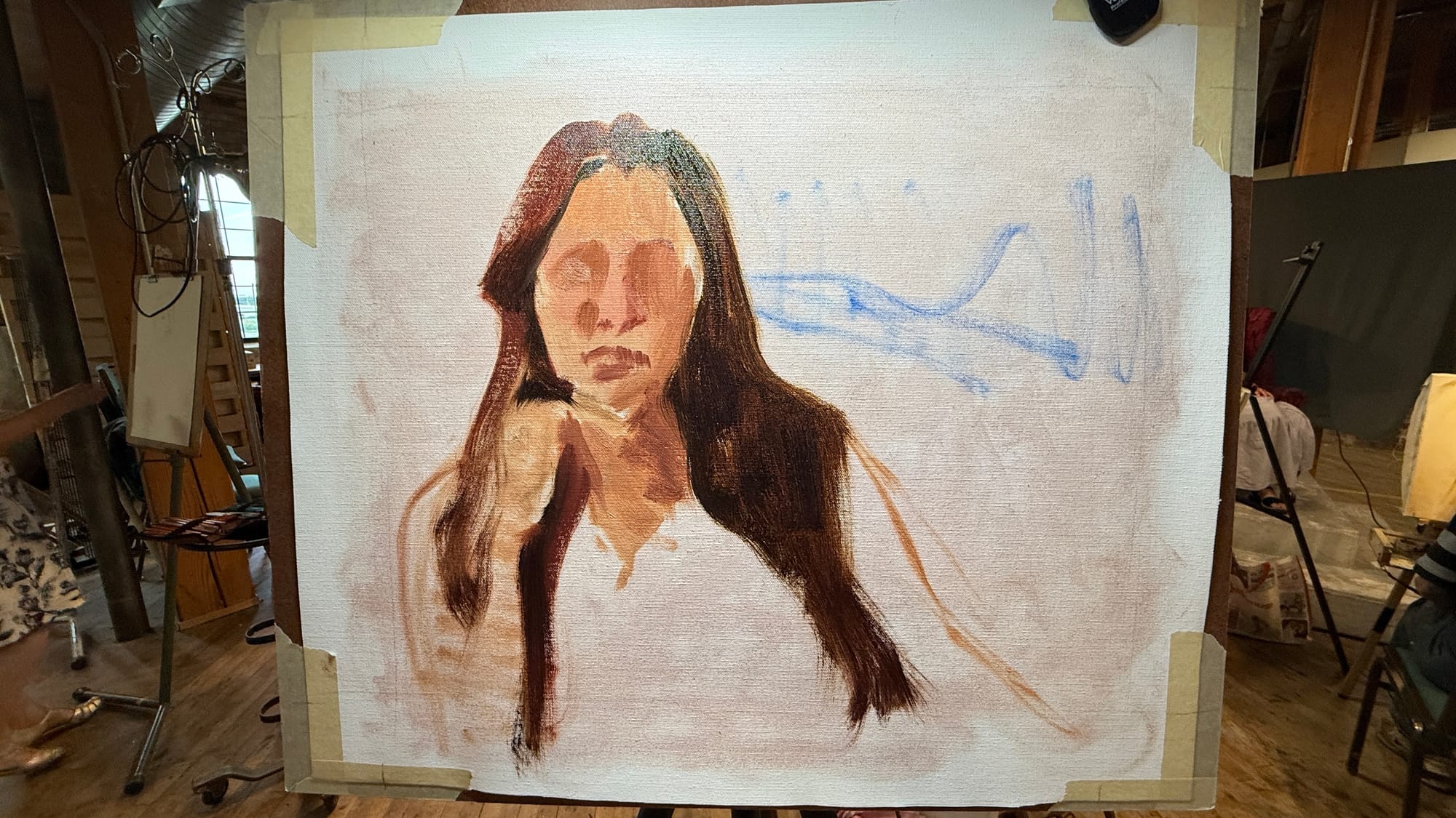 Wednesday night is portrait night, so you know what that means. I don’t have much of interest to say about this one, other than that it went well. Our model was a model from several years back, so I‘ve had experience painting her before. That probably helped it go well.