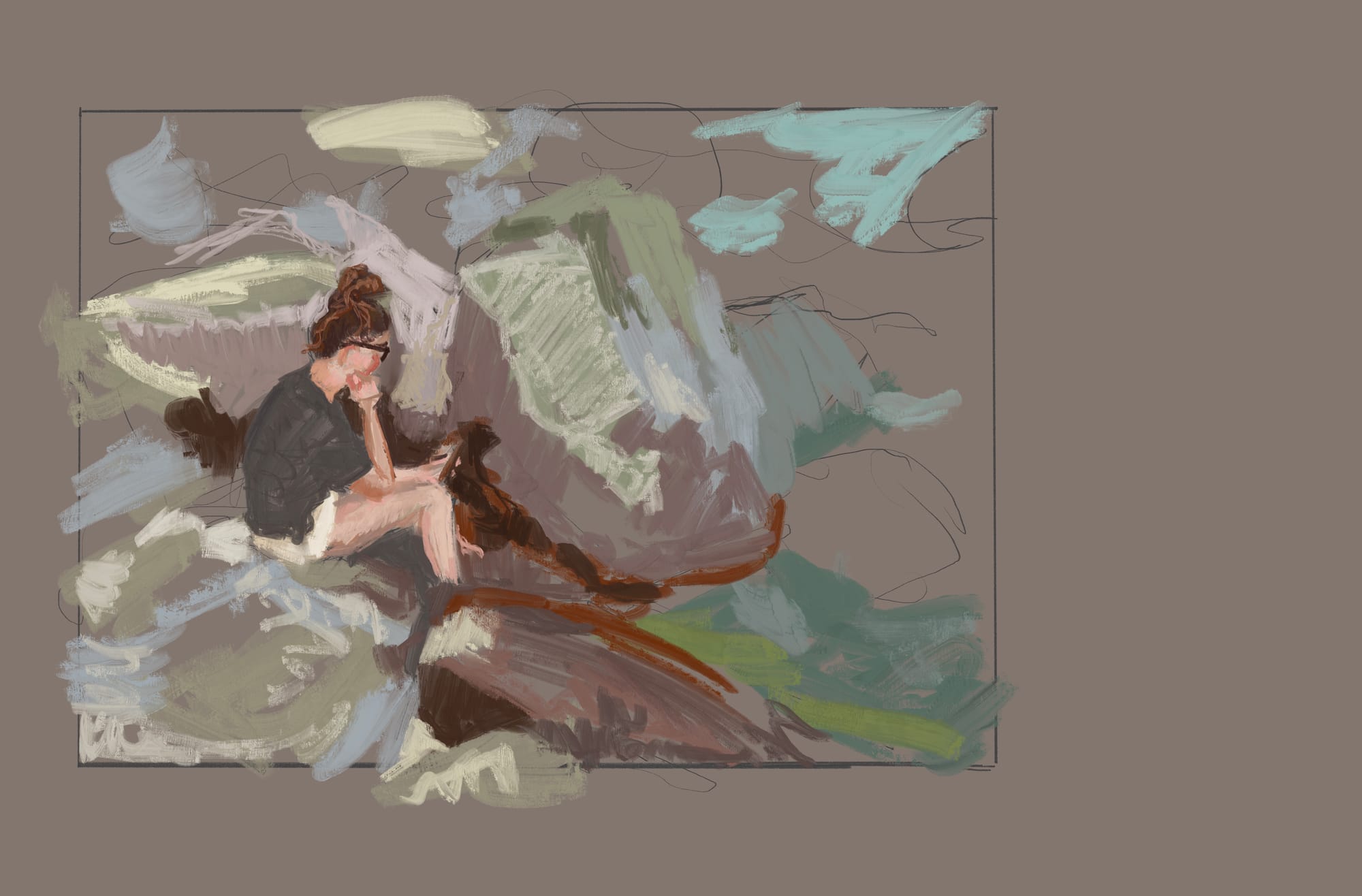 I managed to get into the beta testing for the new version of Procreate, largely so I could test out the new brush engine, and new brushes. I think I talked about this a week or so ago, but this is the second time I've been able to mess around with it. I started this piece while we were watching the new episode of The Great British Bake Off, which I guess really has nothing to do with anything, but I'm telling you anyways. Now that we're through that diversion, I can report that I'm really enjoying the new brushes. I'm gonna try to get further along on this tomorrow, but for now, here's how it's looking.