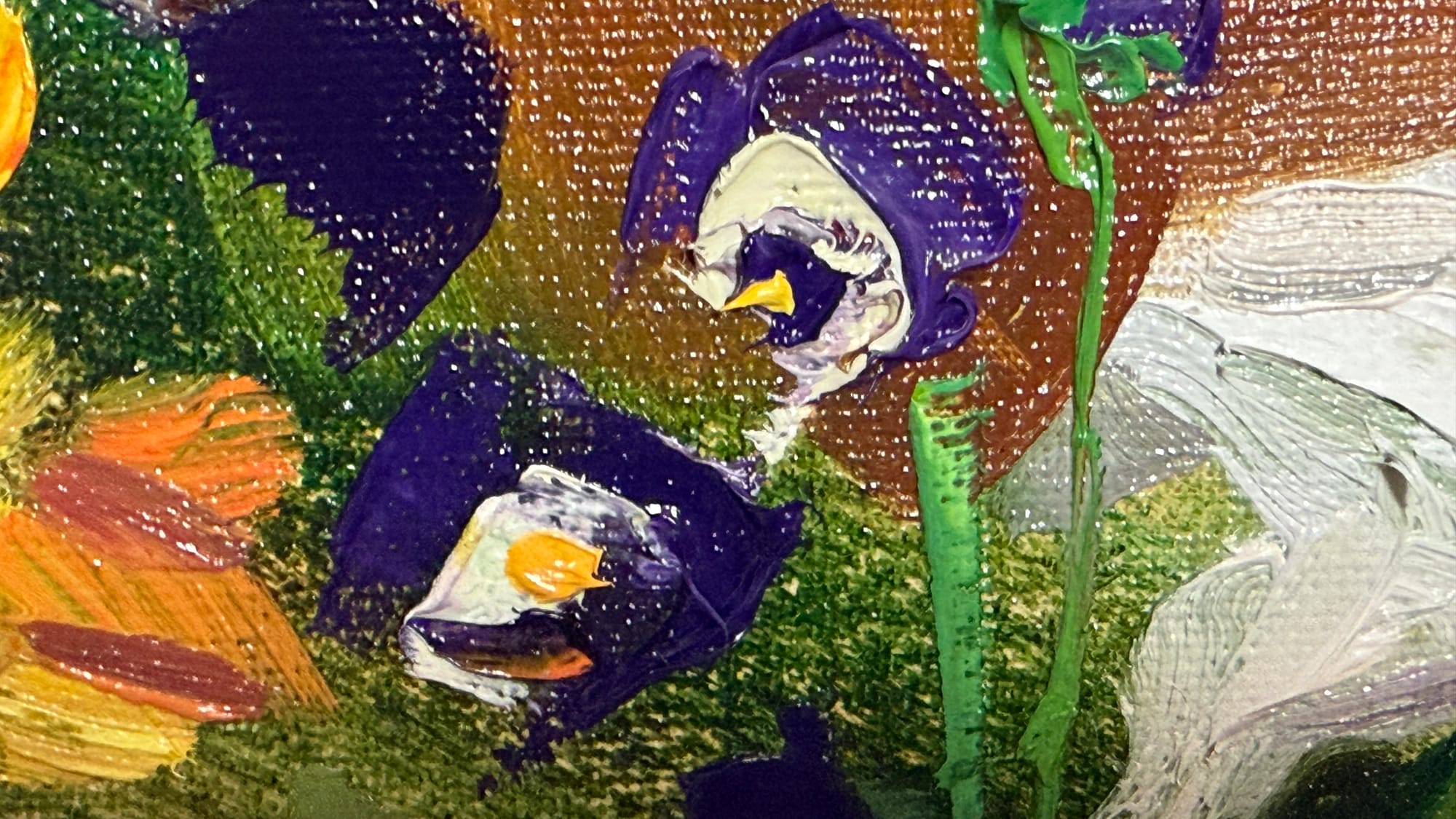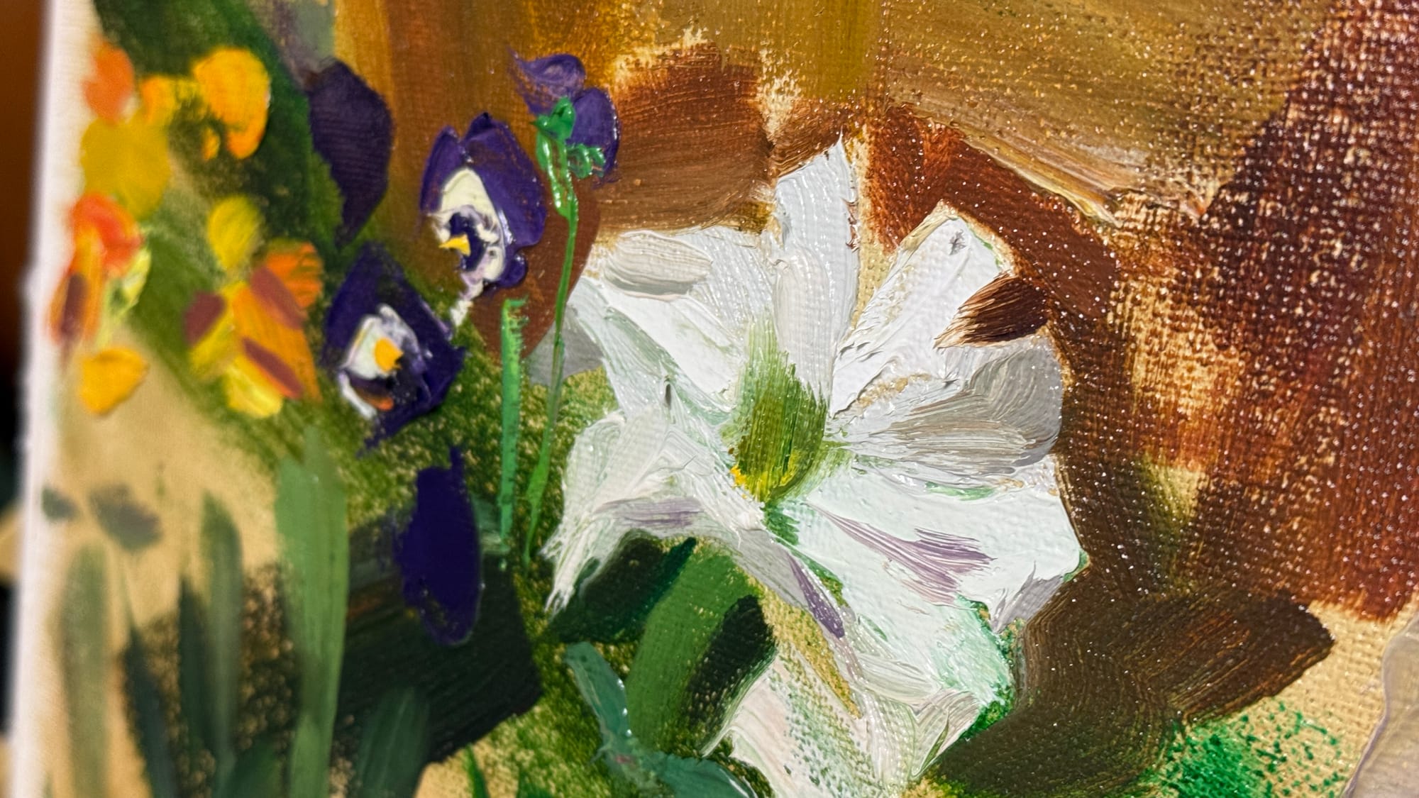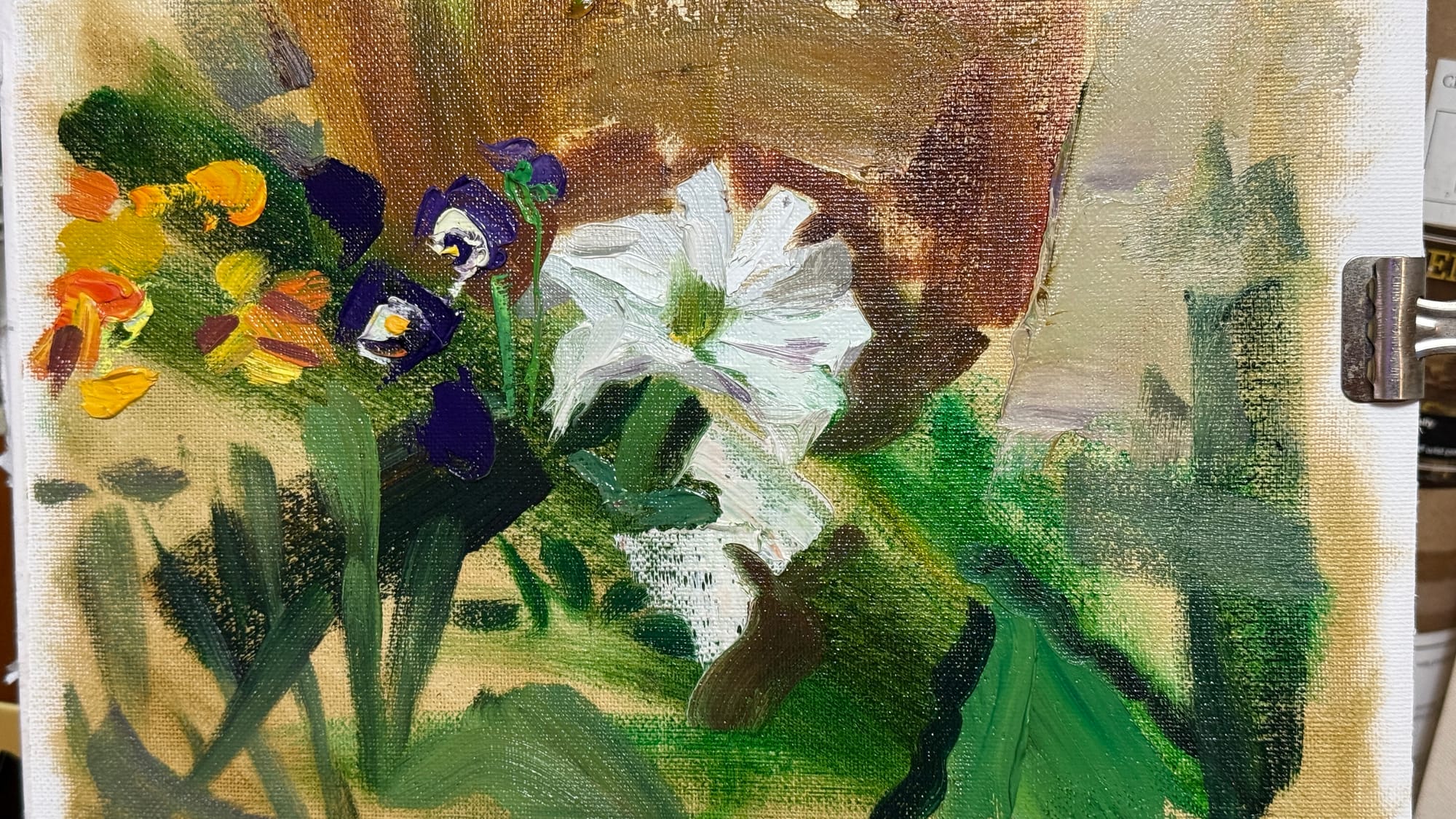 I’m not even trying to get all the details really - I’m trying to get the general feel of the flowers. I decided to mostly ignore the overall composition - the surrounding colors are just there to help provide context for the flowers. I think it’s progress, skill-acquisition-wise. But it’s slow, and there isn’t a painting session like this where I didn’t wish I magically understood floral painting and could just knock them out perfectly every time.