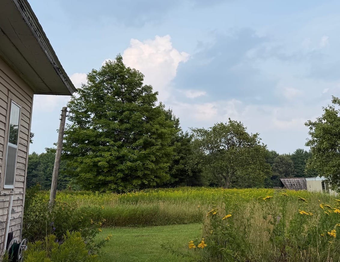 I started a painting of the view towards the back of the property this evening, focusing specifically on a (now) wild apple tree. I liked the pillar of cloud towering over the trees. - the echoes of form in the land and sky. The little shed on the right that I’ve started loosely painting in is a hut my uncle made when he was in high school. It’s Falling apart but still looks so neat. I got the primary focal point - the apple tree - close to finish. I’m hoping to finish the clouds, which are basically just the white of the paper, finished tomorrow. from there I’ll figure out what other elements of the painting I want to push further and what I like as is.