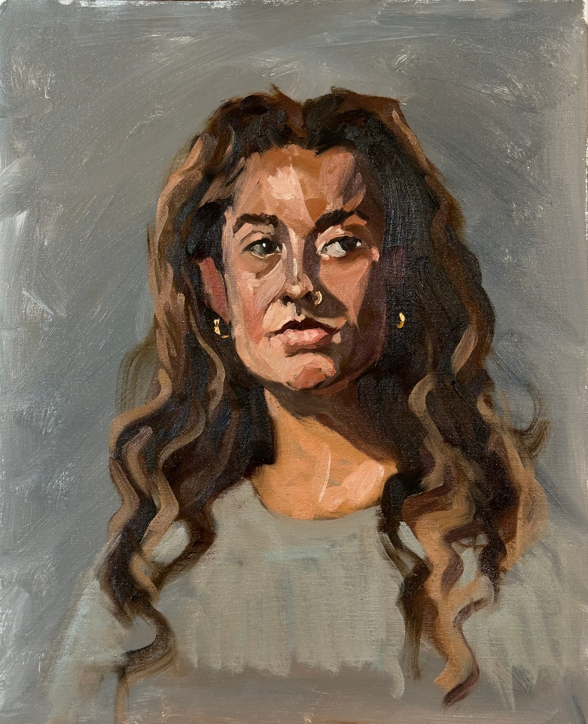 I got my first painting (see below) done at about the half-way mark of our portrait session tonight, so I relocated to a bit of a profile scene and began another one. The second one (above) turned out very well. The first one did too, but the second one was so lose and fluid in execution, and I had already gotten a lot of issues figured out with the first one, so the second one felt like it just flowed out of the brush. It was a really great night! Good thing too, as I'm doing a live portrait demonstration along with about 15 other artists at The Box Factory in a little over a week, and I want to be as ready as possible before the event.