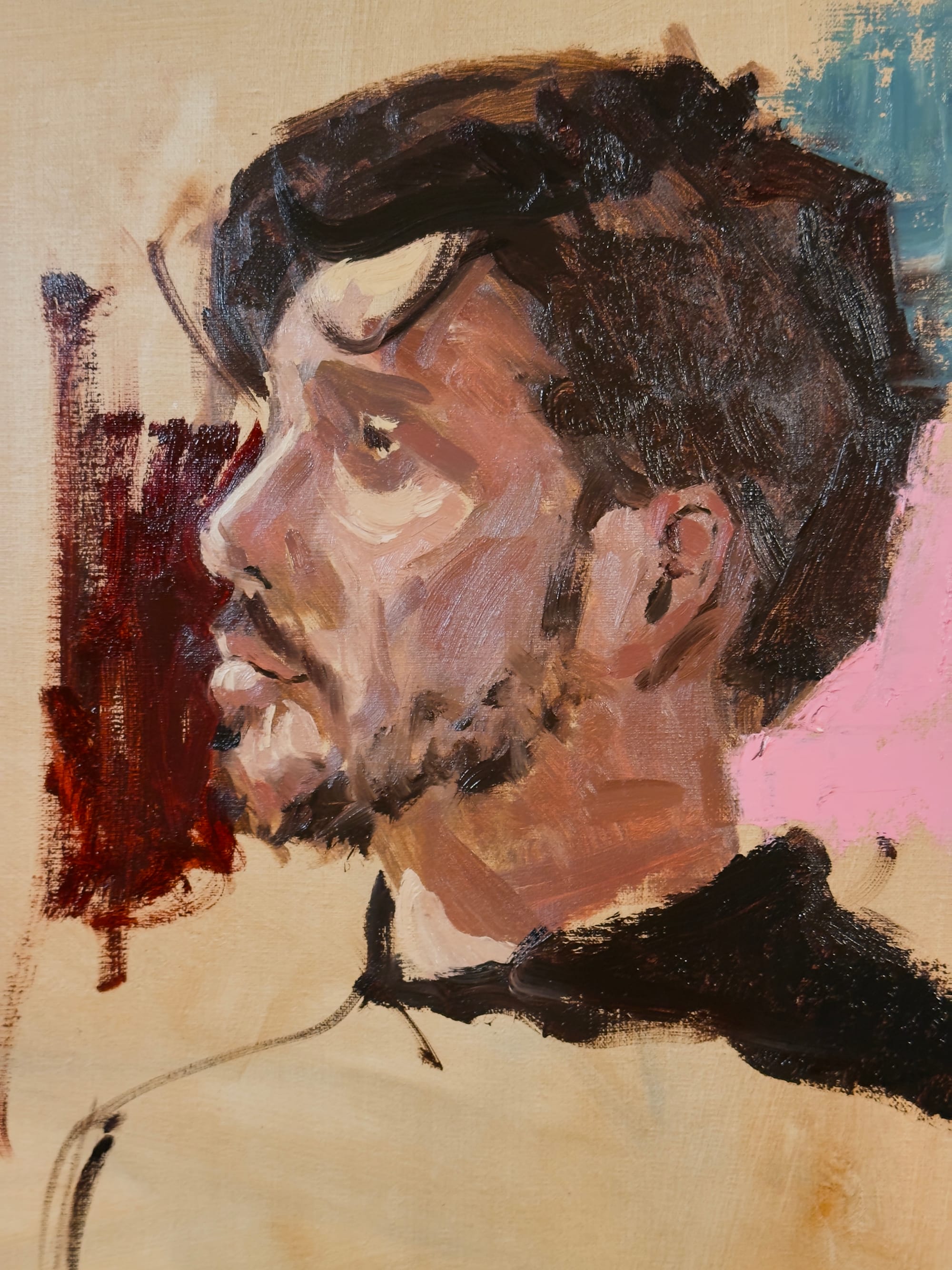 As we all know, Wednesday night is occasionally portrait night. Tonight was one such night. I've been really enjoying getting two portrait studies done - first a 3/4 portrait, and then a profile sketch. It's always amusing to me that the first sketch is always pretty tight - pretty buttoned up and proper. Then the second one is beautifully loose and sloppy! I'd guess there's usually more of a likeness in the first one, but I love the free, looseness of the second one. There's just more spirit in it - and I definitely always have more fun with that one!
